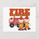 Fire Department T-shirts, bodysuits, tote bags, mugs, magnets, and other firefighter gear featuring a red fire engine and several stick figure firefighters.