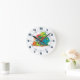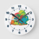 The clock did not take as long to arrive as I thought it might and was extremely well packaged. I didn't do the measurements so I didn't realize it is a little smaller than the average clock but that does not matter (just make sure you check if that's important to you).It is really nifty! It seems very solid and well made not flimsy at all. It has been going well and has kept good time in its few weeks on my wall. Nice product. Gets noticed too! Nicer in real life than the picture but true to the picture