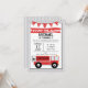 This boy's birthday party invitation features a cute fire engine, banner and bunting flag. I wanted to create a new fire engine invitation because it's a popular birthday theme that has done quite well at the store. This design is light and bright and can be used for various ages. I've used a limited colour palette consisting of red and a faint light blue as well as white and black. This boy's fire engine or fire truck birthday invitation is ready to be personalised and is ideal for a fire engine theme birthday party.