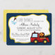 Chubby fire truck and decorative fire hose frame to celebrate baby with this fun and colourful baby shower invitation. Personalise text as preferred and room for registry information on back.