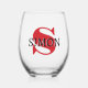Fire Engine Red Large Initial Letter and Black Name | Modern and Elegant Stemless Wine Glass