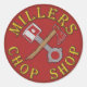 A variation on the classic cross bones logo, this one in red and gold, reminiscent of fire engine colours. Millers Chop Shop in Reno Nevada making some of the coolest hot rods around.