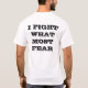 Fire Fighter written on front. I Fight What Most Fear written on back.