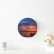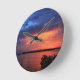 The clock did not take as long to arrive as I thought it might and was extremely well packaged. I didn't do the measurements so I didn't realize it is a little smaller than the average clock but that does not matter (just make sure you check if that's important to you).It is really nifty! It seems very solid and well made not flimsy at all. It has been going well and has kept good time in its few weeks on my wall. Nice product. Gets noticed too! Nicer in real life than the picture but true to the picture