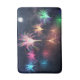Five sprays of fireworks reflected in the dark water beneath - a bursts of pale blue, rose pink, bright gold, and mint green, and in the centre sparkles of all the colours of the rainbow.