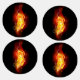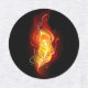 Bright peacock feather made of fire and flame on black background.