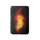 Bright peacock feather made of fire and flame on black background.
