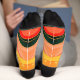 This gorgeous socks features a stunning fire pattern with abstract organic lines in a beautiful combination of sage green, dusty pink, and sunny ochre yellow.