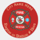 This custom round sticker is decorated with the Fire Rescue Maltese Cross and can be customised above with the name of a town or city and below with the engine or station number, or any other information you would care to substitute.