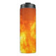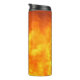 A thermal tumbler featuring a photo of fire.
