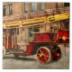 This is an electrically powered ladder truck. Made in Germany back in 1907, they were showing off their new fleet of trucks. It ran quietly, and had a motor that lifted that ladder, you can see the chain in the back. Presumably, that box in the front must have been where the batteries went. I'm not sure what went into those cylinders, maybe they were large fire extinguishers. The real weird thing about this truck was the seating arrangement. They seemed to have put them just about everywhere. Those might be belts that held them in.