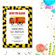 Fire Truck Black Yellow Chequered 3rd Birthday Invitation
