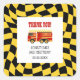 Fire Truck Black Yellow Chequered 3rd Birthday Square Sticker