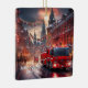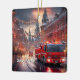 This red fire truck in a city makes a cheery holiday design, perfect for any firefighter.