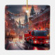Fire Truck Christmas Ceramic Ornament
