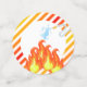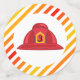 Celebrate your son's or daughter's birthday with this cute fire helmet birthday party stickers. Red helmet is front and centre with yellow, red and orange stripes. Can easily be changed for your kiddo's first birthday (or any age!). Just change the text and the number on the helmet and you're ready to sound the alarm!