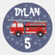Fire truck Space Blue Birthday Classic Round Sticker
