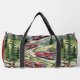 This duffle bag features a captivating pattern of red fire trucks navigating a winding road through a lush green forest. The vibrant scenery with tall pine trees and a subtle mountain backdrop creates an adventurous feel. A prominent side pocket with a fire department emblem is personalised with "FIRE RESCUE," "JENNY SAMSMITH," and "Vancouver B.C.," making it a unique gift for a firefighter. Personalise with your name and department home town and more. monogram