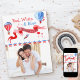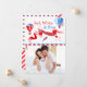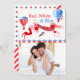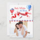 Customise this red white and Blue themed pregnancy announcement with your own photo and message. The design features the wording "Red White & Blue a Firecracker is Due" with stars and stripes and hot air balloons. The template is set up for you to add your photo to the front of the card and your custom message to the back. Cute american theme and perfect for July 4th pregnancy announcements.
