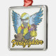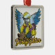 Winged firefighter in fire gear holding a rescued little girl! The girl holds onto the firefighters mask and is thankful for her hero! Firefighter Angel with beautiful wings, firefighters are heroes! Fire Department ornament!