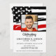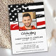 Thin Blue Line Firefighter Celebration of Life Memorial in a modern Firefighter Flag American flag design in firefighter flag colours. Personalise this firefighter memorial celebration of life invitation with your fireman's photo, name & dates and sentiment, and event details . This firefighter funeral celebration of life will be a treasured keepsake. Perfect for a firefighter funeral, fireman funeral, firefighter memorial service or firefighter celebration of life. In Loving Memory Firefighter Memorial Thin Red Line Flag. COPYRIGHT © 2020 Judy Burrows, Black Dog Art - All Rights Reserved. Firefighter Celebration Of Life Red Line Memorial Invitation