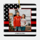 Thin Red Line Christmas Ornament. This firefighter christmas ornament will be a treasured keepsake. Ornament is double sided, you can do 2 favorite photos, one on each side. Perfect for firefighters, fireman family and fire rescue service. Personalize name on the front, and date on the back.