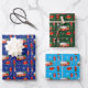 This firefighter Christmas pattern features Santa Claus in a firetruck with his reindeer and elf, an adorable Dalmatian wearing Santa's hat and a red scarf, a fire hydrant decorated with Christmas lights, holly and fire hat plus a fire extinguisher in a Santa outfit on three different colored background. This wonderful pattern is perfect for a firefighter or a child who loves everything fireman related.