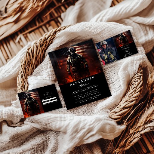 Celebrate a milestone with a design that captures power, grit, and unwavering determination. Featuring a dramatic firefighter illustration, blazing flames, and bold modern typography, this layout creates an unforgettable statement piece for any graduate stepping into their next chapter. Personalize the details to honor their journey, their strength, and the courage that defines them. A striking choice for anyone who wants a dramatic, impactful aesthetic with a touch of heroism.