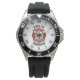 Has heft and feel of expensive stainless steel quartz wrist watches. Solid construction and good looks. Although it had a really top quality rubber strap, I substituted a stainless steel "Shark" style mesh strap, which I think is the most comfortable strap available. Perfect. True colors of original image. Clear, crisp image precisely aligned and spaced.