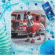 A Dalmatian wearing a red shirt labelled "Retired" stands proudly in front of a firetruck.