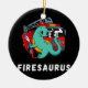 Firefighter Dinosaur Cute Fireman Truck Dino T Ceramic Tree Decoration