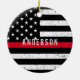 Firefighter distressed Thin Red Line with name Ceramic Tree Decoration
