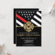 Celebrate your firefighter’s hard-earned achievement in style with this customisable firefighter graduation party invitation. Featuring a bold firefighter flag design with black and white stripes, a symbolic thin red line, and a classic gold fire department badge, this invitation honours the courage and dedication of your graduate. Perfect for fire academy graduation parties, firefighter school celebrations, or honouring a new career in firefighting, this invitation highlights their service and heroism. Personalise with your firefighter’s name, graduation date, time, and party details. Ideal for fireman-themed parties, firefighter family celebrations, and fire department graduations.