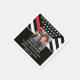 This design features a firemen's flag with black and white stripes, and a thin red line stripe as well. The details for the graduating firefighter sit below a picture of the new fire academy graduate.