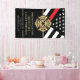 This design features a firemen's flag with black and white stripes, and a thin red line stripe as well. "Congratulations" and a fireman's badge sits above the name of the graduating firefighter. This design also works great for retiring firefighters, lieutenants, or chiefs. Celebrate in style!