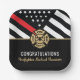 This design features a firemen's flag with black and white stripes, and a thin red line stripe as well. "Congratulations" and a fireman's badge sits above the name of the graduating firefighter. This design also works great for retiring firefighters, lieutenants, or chiefs. Celebrate in style!