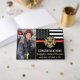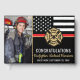 This design features a firemen's flag with black and white stripes, and a thin red line stripe as well. "Congratulations" and a fireman's badge sits above the name of the graduating firefighter. Celebrate in style!