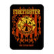 Featuring a blazing fire department badge in the centre with fire hydrant, helmet, hook and ladder. Large FIREFIGHTER text on a background of the American flag with fire. Great to support firefighters, fundraisers, retired, full time and volunteers firefighters.