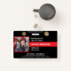 The customizable fire department ID badge features a firefighter emblem at the top that can be customized to your department as well as a place for the state logo as well. Customize with the firefighter's photo on the left. Beside the photo, the firefighter’s name, badge number, rank, and department are displayed. Add your own barcode to the back of the card, along with issue and expiration dates, and description of the firefighter, captain, chief, or office employee.