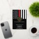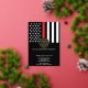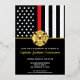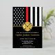 This design features a firemen's flag with black and white stripes, and a thin red line stripe as well. A fireman's badge sits above all of the party details for the retiring firefighter, lieutenant, or chief's retirement party.