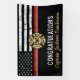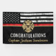 This design features a firemen's flag with black and white stripes, and a thin red line stripe as well. "Congratulations" and a fireman's badge sits above the name of the  retiring firefighter, lieutenant, or chief. Celebrate in style!