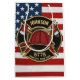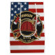 Firefighter NAME Fireman Fire Department USA Flag design - Emblem with Red Helmet and Axe. Customise with your Name, Station/Dept Number and location.