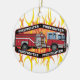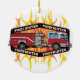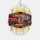 Beautiful fire truck is the focus of this firefighter ornament! Fire red fire engine with flame background! FIREFIGHTER text surrounds the fire truck with large flame background! Prefect for firefighters, family and fire stations!