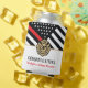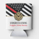 This design features a firemen's flag with black and white stripes, and a thin red line stripe as well. "Congratulations" and a fireman's badge sits above the name of the graduating firefighter. This design also works great for retiring firefighters, lieutenants, or chiefs. Celebrate in style!
