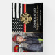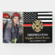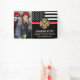 This design features a firemen's flag with black and white stripes, and a thin red line stripe as well. "Congratulations" and a fireman's badge sits above the name of the graduating firefighter. This design also works great for retiring firefighters, lieutenants, or chiefs. Celebrate in style with this customisable photo banner!