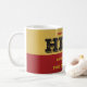Gift mug to wish happy anniversary to a firefighter on their employee anniversary. As heroes, they respond to the call of duty with honour, integrity and self-sacrifice. This mug features the word “Hero” in grunge letters with the fire fighter symbol as the O. A bit of dirty distress is seen representing the smoke and dirt they deal with in fires. Emblem from Vecteezy.