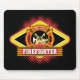 Firefighter logo with firefighter badge with raging flames, fire ladder and fire hydrant symbols! Large firefighter text! Bold firefighter tees and gifts! Perfect for firefighting fundraisers and fire departments! Blazing red and yellow colours!