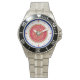 Has heft and feel of expensive stainless steel quartz watches. Good band with safety catch. I removed links, which is easy because engraved arrows show direction to push the linking pins. As always by this seller, the image (a railroad logo) is a perfect reproduction of my emailed image, and is precisely spaced and aligned.