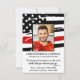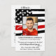 Thin Red Line Firefighter Memorial Prayer Card in a modern American flag design in firefighter flag colours. Personalise this firefighter memorial prayer card with your firefighter's photo, department, name & dates. Perfect for fire departments to honour a fallen firefighter, and fireman memorial keepsakes. Front Quote "Be strong and courageous, for the Lord will be with you wherever you go." Joshua 1:9 ~ Back quote "A Hero is...someone who has given his or her life to something greater than oneself." and Prayer "We Hold You Close." Please reach out if you would like a custom prayer. COPYRIGHT © 2020 Judy Burrows, Black Dog Art - All Rights Reserved. Firefighter Memorial Funeral Prayer Card