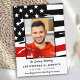 Thin Red Line Firefighter Memorial Funeral Thank You Card in a modern Firefighter Flag American flag design in firefighter flag colours. Personalise this firefighter memorial thank you card with your firefighter's photo, name & dates and sentiment . This firefighter funeral thank you card will be a treasured keepsake. Perfect for a firefighter funeral, and fireman memorial service or celebration of life. In Loving Memory Firefighter Memorial Thin Red Line Flag. COPYRIGHT © 2020 Judy Burrows, Black Dog Art - All Rights Reserved. Firefighter Memorial Modern Thin Red Line Funeral Thank You Card